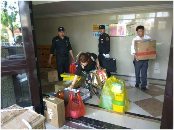(物业人员发扬拾金不昧的精神,把快递员遗落的快递主动送到快递员手中)