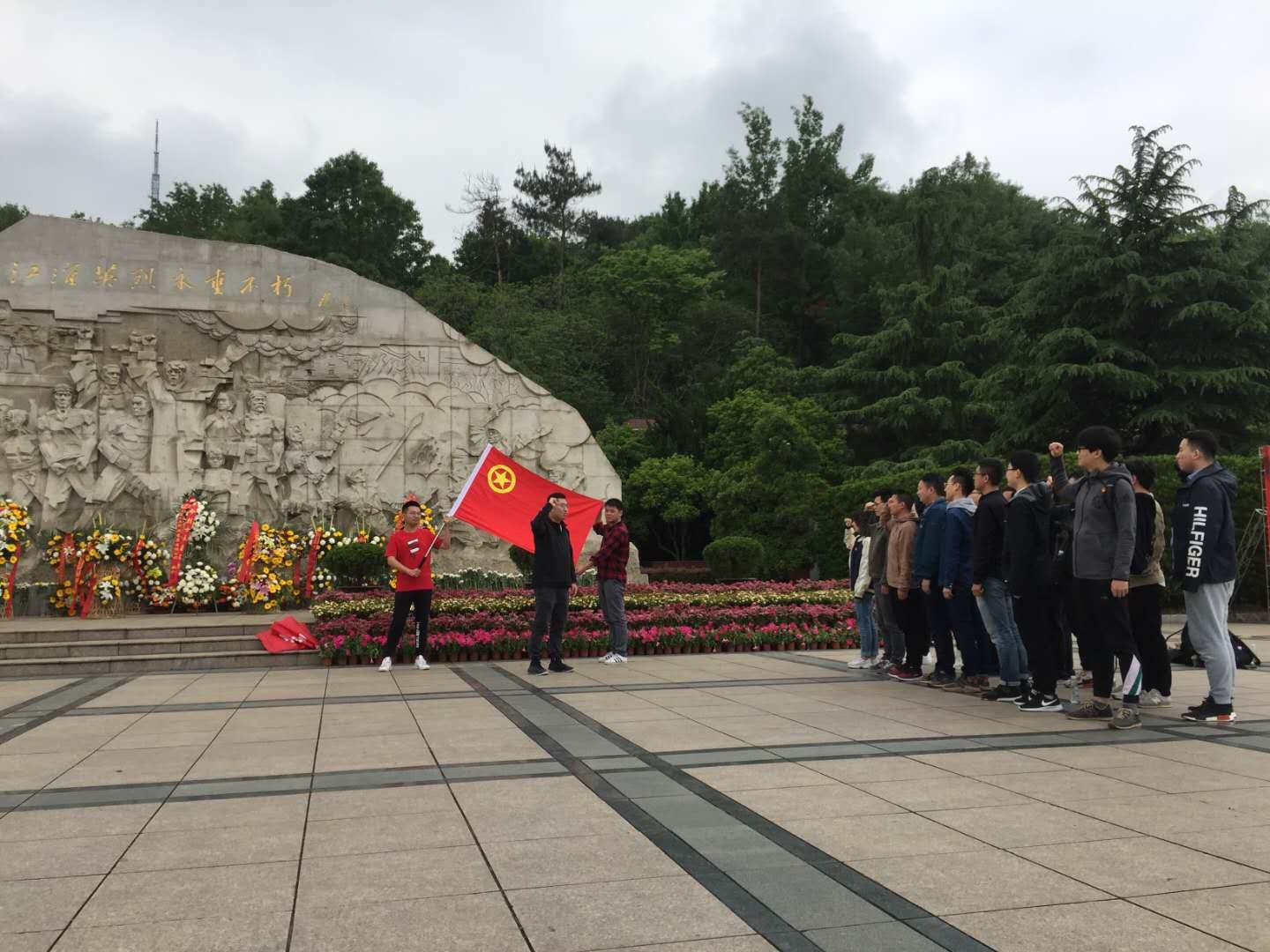 在观看学习完习近平总书记重要讲话后,团支部为2019年度脱团人员颁发了退团纪念品。随后全体人员前往大蜀山烈士陵园,深切缅怀江淮英烈,在江淮英烈纪念碑前集体宣誓,重温入团誓词,并向革命先烈们献上花篮,致以深深的敬意。