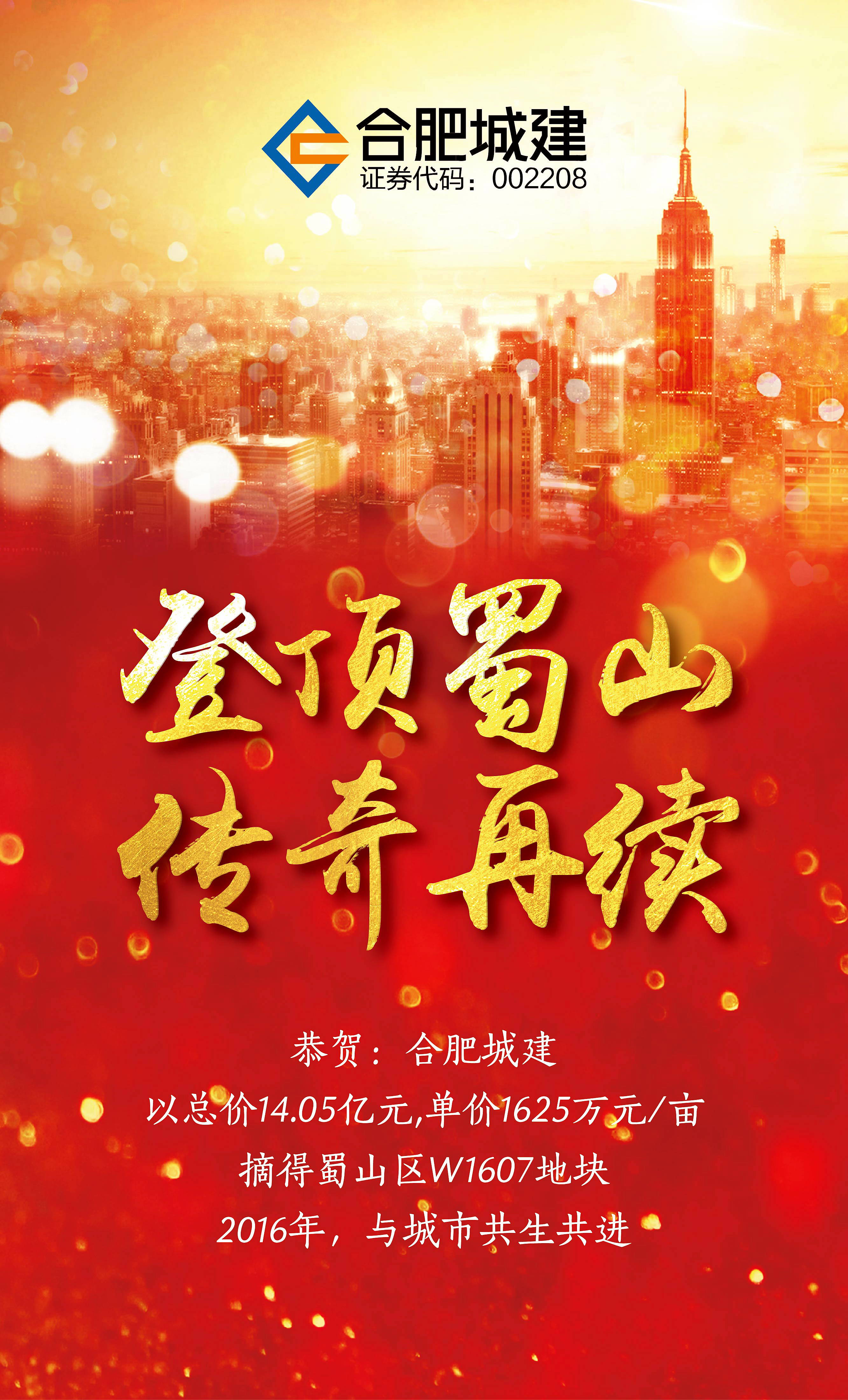 捷报:william英国中文官网登顶蜀山 传奇再续 2016年11月30日下午,合肥市区地块首次全面“限价”土拍,超90家房企群雄逐鹿,william英国中文官网再度发力,最终以成交单价1625万元/亩,总价14.05亿元,成功竞得蜀山区W1607地块。是william英国中文官网布局未来版图的又一重大举措。 该地块占地面积86.44亩,东边紧邻西二环,北边紧邻樊洼路,西...